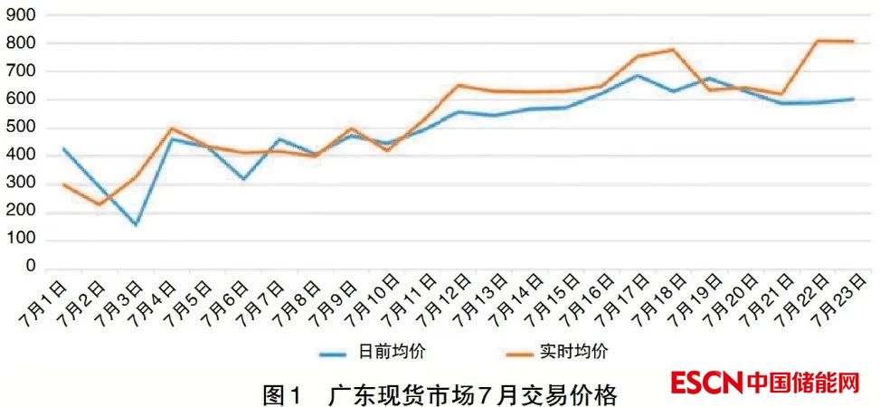 總體上看,目前我國現(xiàn)貨市場結算試運行價格包括中長期市場月度集中競價交易價格并沒有充分反映當前電力供應緊張的情況。以廣東電力市場為例,7月以來現(xiàn)貨市場交易價格雖然整體呈現(xiàn)上升趨勢,但是,上升幅度并不大,如圖1所示,截至7月23日,廣東現(xiàn)貨市場日前均價為505.72元/兆瓦時,實時均價為551.99元/兆瓦時;現(xiàn)貨市場交易價格與燃煤電廠基準價相適應且相對平穩(wěn)。