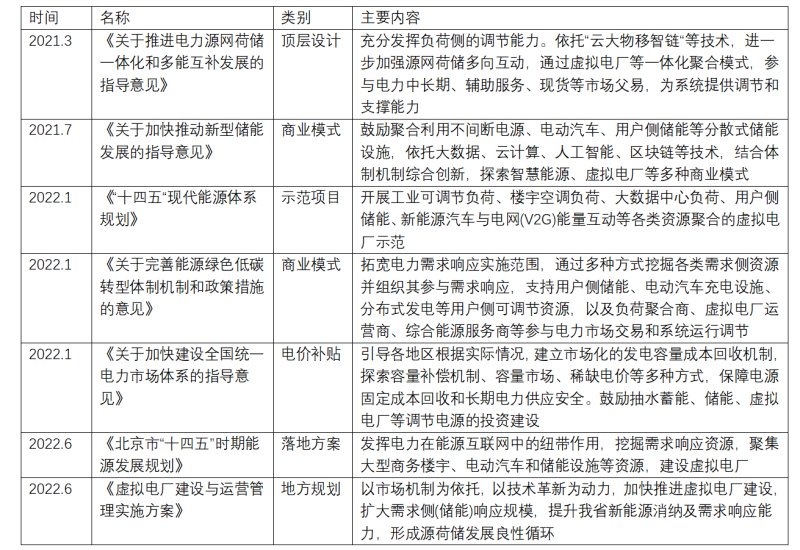 表1 2021年-2022年虛擬電廠主要政策梳理