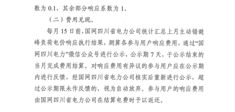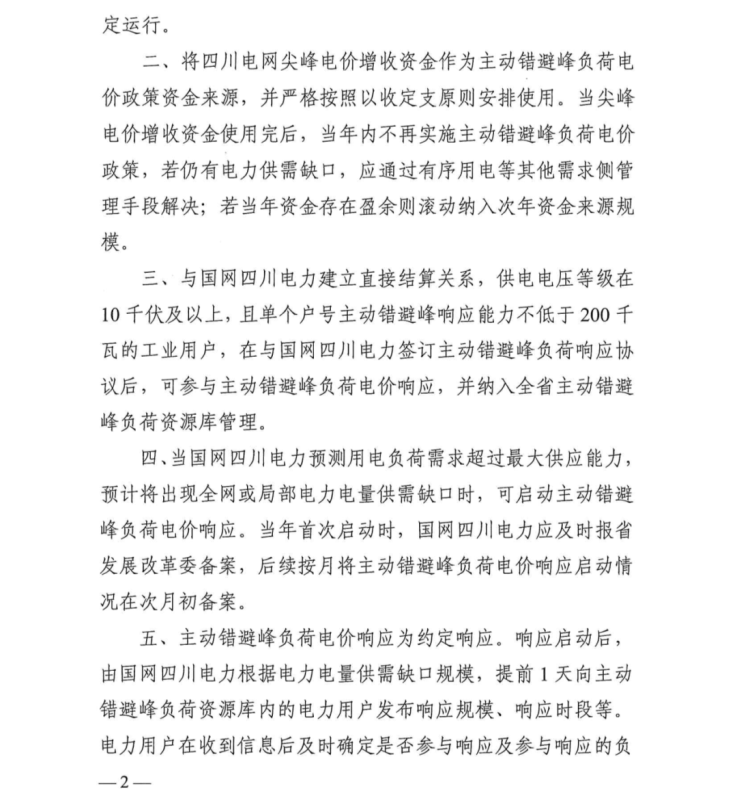 中國儲能網(wǎng)訊:近日,四川省發(fā)改委發(fā)布《關(guān)于四川電網(wǎng)試行主動錯避峰負荷電價政策有關(guān)事項的通知》。通知指出,在國網(wǎng)四川電力供區(qū)范圍試行主動錯避峰負荷電價政策,對主動參與并有效執(zhí)行主動錯避峰負荷電價響應的電力用戶,其通過主動錯避峰負荷電價響應臨時減少的電量執(zhí)行主動錯避峰負荷電價,電價標準為0.4元/千瓦時。
