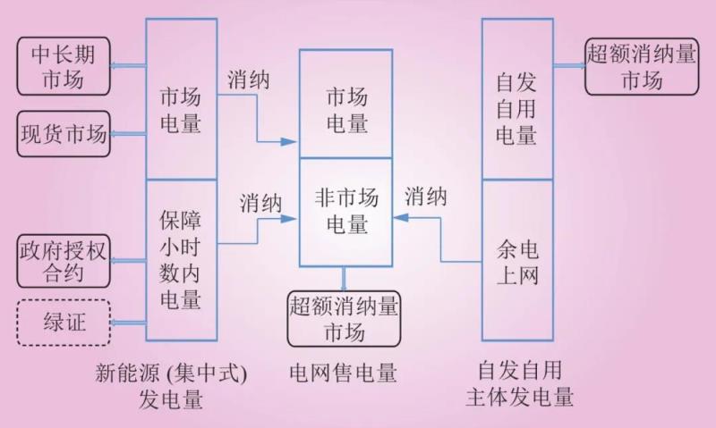 無論現(xiàn)貨市場采用集中式還是分散式,日前市場和實時市場都采用集中競價模式,新能源和火電同臺競爭、報量報價,在一個“池子”中無法區(qū)分市場主體購買的到底是火電還是新能源,且無法體現(xiàn)新能源環(huán)境屬性的貨幣價值。此外,由于新能源發(fā)電曲線與用戶用電曲線差別較大,若不考慮曲線差異將電量整體按比例分配給市場主體,將會造成較大誤差。