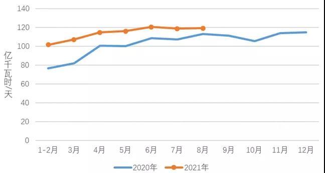 分產(chǎn)業(yè)看①,1-8月,第一產(chǎn)業(yè)用電量660億千瓦時(shí),同比增長(zhǎng)19.3%;第二產(chǎn)業(yè)用電量36529億千瓦時(shí),同比增長(zhǎng)13.1%;第三產(chǎn)業(yè)用電量9533億千瓦時(shí),同比增長(zhǎng)21.9%;城鄉(xiāng)居民生活用電量7981億千瓦時(shí),同比增長(zhǎng)7.5%。