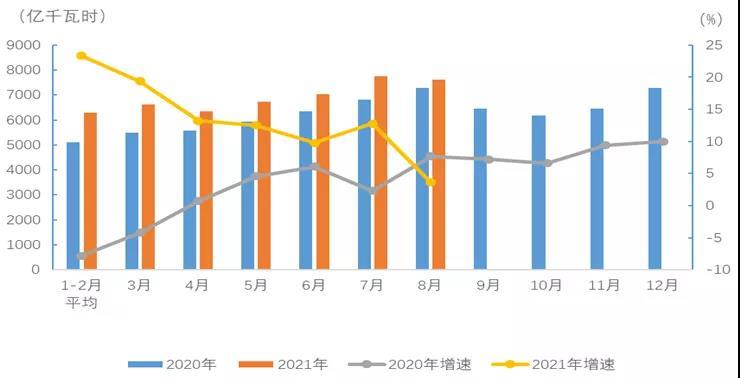 1-8月,全國(guó)全社會(huì)用電量54704億千瓦時(shí),同比增長(zhǎng)13.8%。其中,8月份全國(guó)全社會(huì)用電量7607億千瓦時(shí),同比增長(zhǎng)3.6%。