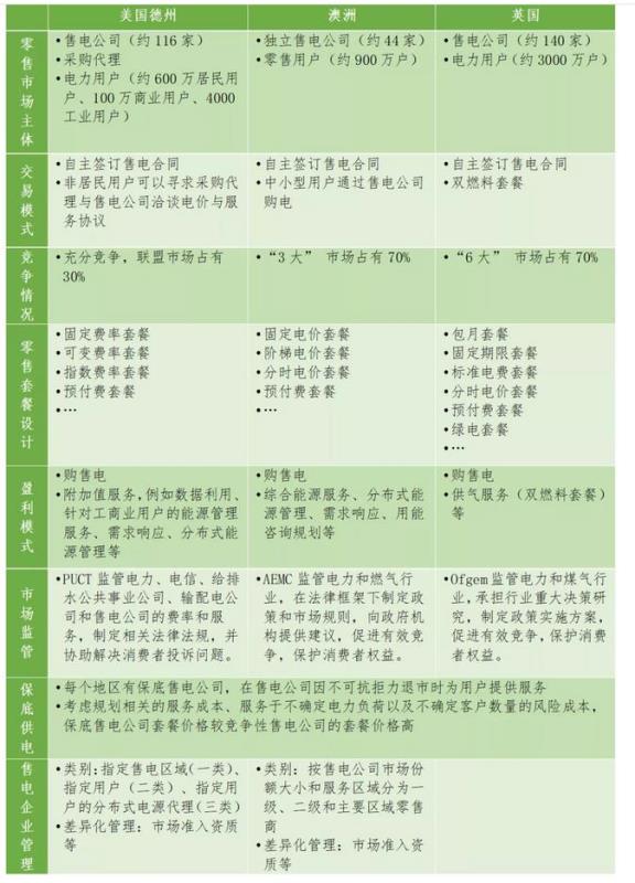 表1. 美國(guó)德州、澳洲、英國(guó)電力零售市場(chǎng)情況