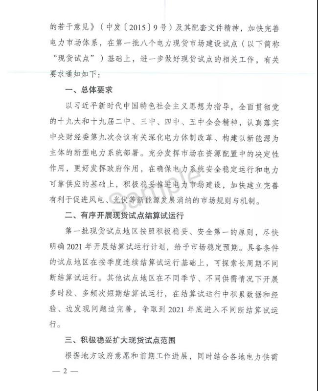 《通知》要求第一批試點(diǎn)區(qū)域按照積極穩(wěn)妥、安全第一的原則,盡快明確2021年試運(yùn)行計(jì)劃,給予市場(chǎng)穩(wěn)定預(yù)期。具備條件的地區(qū),在按季度連續(xù)結(jié)算試運(yùn)行基礎(chǔ)上,探索長周期不間斷結(jié)算試運(yùn)行。其他地區(qū)在不同季節(jié)、不同供需條件下開展多時(shí)段、多頻次短期結(jié)算試運(yùn)行,在結(jié)算試運(yùn)行中積累經(jīng)驗(yàn),發(fā)現(xiàn)問題并完善,爭取2021年底進(jìn)入不間斷結(jié)算試運(yùn)行。