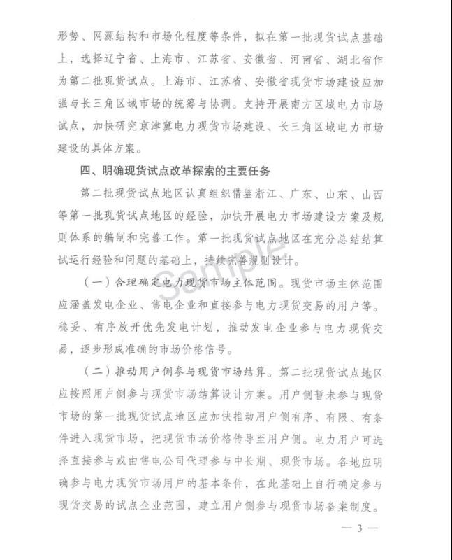 4月28日,國家發(fā)改委和國家能源局聯(lián)合印發(fā)《關(guān)于進(jìn)一步做好電力現(xiàn)貨市場(chǎng)試點(diǎn)工作的通知》(以下簡稱《通知》)。《通知》明確了電力現(xiàn)貨試點(diǎn)范圍擴(kuò)大,擬選擇上海、江蘇、安徽、遼寧、河南、湖北等6省市為第二批電力現(xiàn)貨試點(diǎn)。