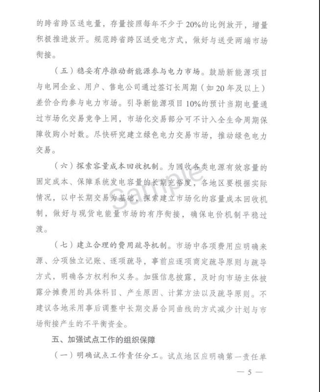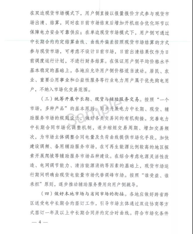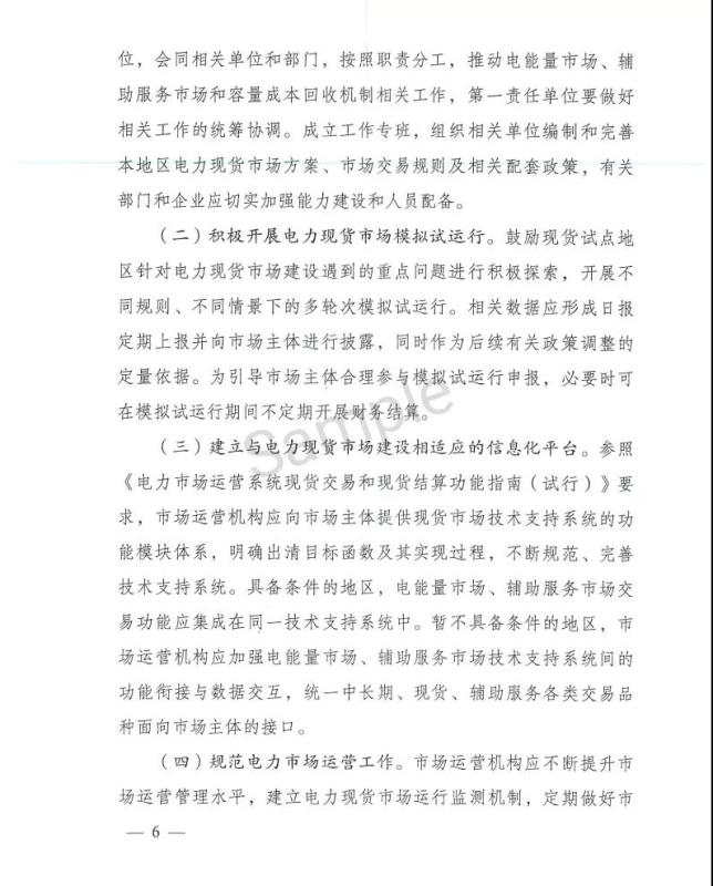 《通知》還明確了電力現(xiàn)貨試點(diǎn)改革探索的主要任務(wù),包括:合理確定市場(chǎng)主體范圍;推動(dòng)用戶側(cè)參與市場(chǎng)結(jié)算;統(tǒng)籌開展中長期、現(xiàn)貨、輔助服務(wù);做好本地市場(chǎng)與省間市場(chǎng)銜接;推動(dòng)新能源參與市場(chǎng);探索容量成本回收機(jī)制;建立合理的費(fèi)用疏導(dǎo)機(jī)制。