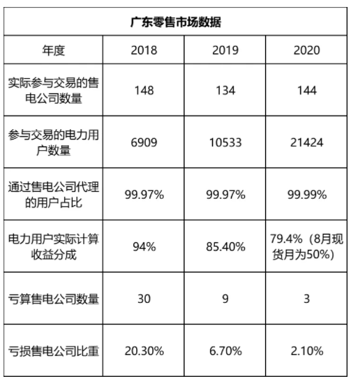 隨著現(xiàn)貨市場試點(diǎn)的不斷推進(jìn),電力交易對售電公司的要求越來越高。廣東電力交易中心相關(guān)人士介紹,一些售電公司已經(jīng)在市場中表現(xiàn)出了越來越高的水平,例如去年8月售電公司在現(xiàn)貨市場中總體平均申報(bào)準(zhǔn)確率達(dá)到98%。從歷年廣東電力市場年度報(bào)告披露的數(shù)據(jù)也可以看到,從18年到20年,售電公司的總體盈利能力也在持續(xù)提升。