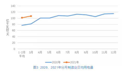 圖3 2020、2021年分月制造業(yè)日均用電量