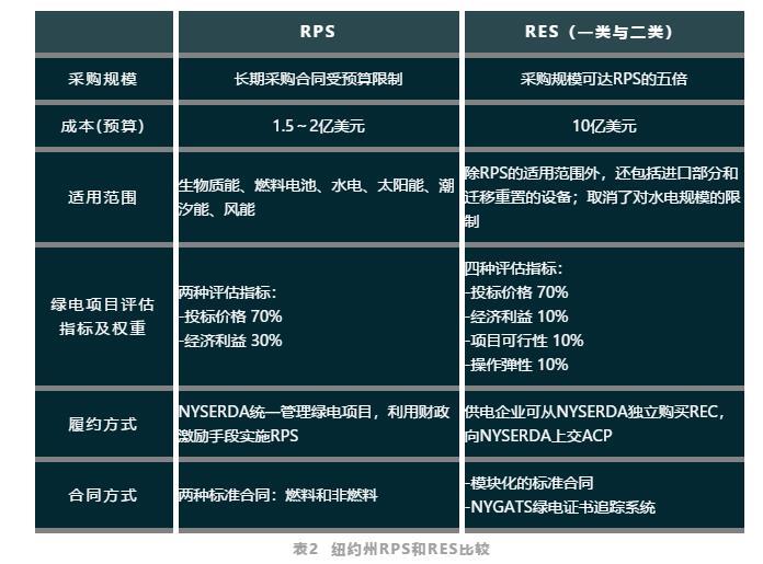 紐約州RPS和RES對比見表2。