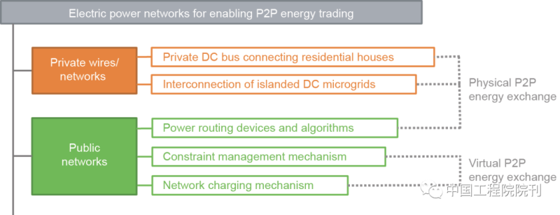 電力網(wǎng)絡(luò)用于傳輸用戶(hù)在端對(duì)端能源交易中所達(dá)成的電量。相關(guān)解決方案可以分為兩類(lèi),如圖9所示。