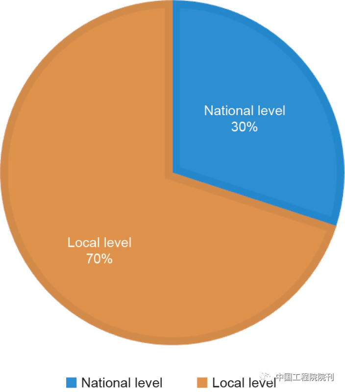 如圖4所示,美國(guó)和歐洲國(guó)家的端對(duì)端能源交易的相關(guān)實(shí)踐最為活躍,其中美國(guó)和德國(guó)擁有世界上最多數(shù)量的端對(duì)端能源交易工程項(xiàng)目。圖5顯示70%的工程項(xiàng)目聚焦于本地層級(jí),具體包括樓宇、社區(qū)、微網(wǎng)和配電網(wǎng)等。另外30%的工程項(xiàng)目聚焦于全國(guó)層級(jí),具體解決跨不同大區(qū)或電力批發(fā)市場(chǎng)中發(fā)電機(jī)組和用戶(hù)間的端對(duì)端能源交易問(wèn)題。