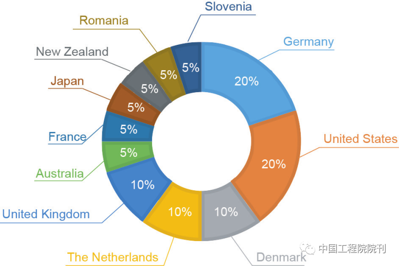 圖4 端對(duì)端能源交易工程項(xiàng)目所占比例(按國(guó)家)