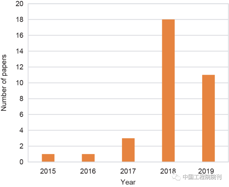 圖1 端對(duì)端能源交易相關(guān)期刊論文統(tǒng)計(jì)(按年)。2019年的論文數(shù)量截至2019年3月底