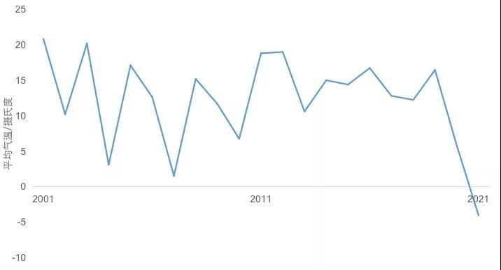 圖2 奧斯汀2001-2021年2月中旬平均氣溫