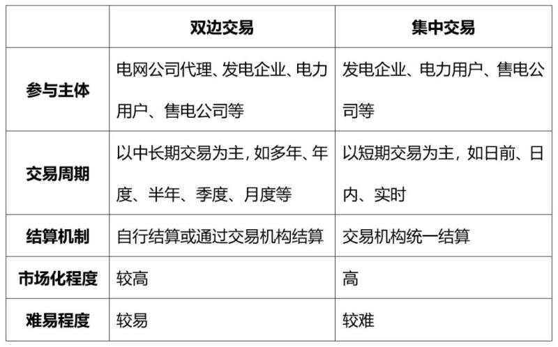 表1 雙邊交易與集中交易對比