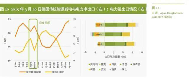 德國作為擁有高可再生能源發(fā)電裝機占比的國家,跨境電力傳輸在可再生能源消納方面發(fā)揮了重要作用,例如當(dāng)?shù)聡稍偕茉窗l(fā)電大發(fā)時刻,奧地利和盧森堡會從電力市場中購買大量德國電力,以享受低廉的價格。同時在應(yīng)對突發(fā)事件時,跨境輸電也為德國電力系統(tǒng)穩(wěn)定運行和安全供給提供了保障,例如 2015 年 3 月 20 日的“日食危機”,9~10 點之間德國從丹麥進(jìn)口電量增加了 169%,從對瑞典的電力出口轉(zhuǎn)向電力進(jìn)口,此外瑞士也為德國額外提供了 42.3 萬千瓦的發(fā)電容量支持。