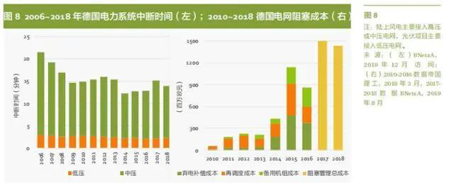 德國雖然可再生能源發(fā)電占比不斷提升,但其電力系統(tǒng)中斷時間(SAIDI)卻逐步走低,2018 年德國 SAIDI 僅為 13.91 分鐘。然而,為了維護(hù)電網(wǎng)的穩(wěn)定運行,近年來德國電網(wǎng)的阻塞管理成本大幅提高,2018 年其總成本是 2013 年的 6.7 倍。研究主要關(guān)注大電網(wǎng)的靈活互濟(jì),因此本章節(jié)將著重介紹德國跨境輸電靈活性的釋放。