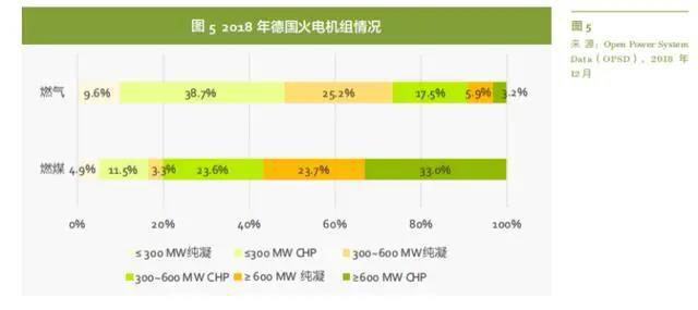 德國的靈活火電機組主要包括四類:硬煤發(fā)電機組、褐煤發(fā)電機組、單循環(huán)燃?xì)獍l(fā)電機組(OCGT)以及聯(lián)合循環(huán)燃?xì)獍l(fā)電機組(CCGT)。截至 2018 年底,德國火電發(fā)電裝機容量超過 8300 萬千瓦,占國內(nèi)總裝機容量的 37.3%,其中褐煤裝機容量約為2120 萬千瓦,硬煤為 2370 萬千瓦,天然氣約為 2940 萬千瓦;2018 年德國國內(nèi)火電發(fā)電量達(dá)到 3173 億千瓦時,占全國總發(fā)電量的 49.1%,其中褐煤發(fā)電量約為 1455 億千瓦時,硬煤為 832 億千瓦時,天然氣為 834 千瓦時。從機組類型來看,德國煤電以大型發(fā)電機組為主,約占 56.7%,其中 68.1% 的燃煤機組為熱電聯(lián)產(chǎn)(CHP)機組,將近一半的單機容量在 60 萬千瓦以上,35% 在 30 萬千瓦到 60 萬千瓦之間;燃?xì)鈾C組以小型發(fā)電機組為主,其中燃?xì)?CHP 占燃?xì)庋b機總量的 59.4%,絕大部分單機容量小于 30 萬千瓦。