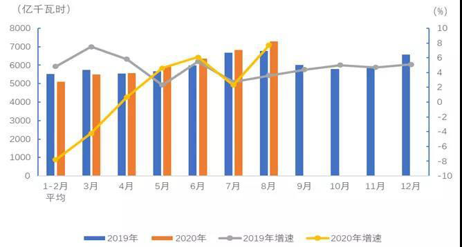 1-8月,全國全社會用電量47676億千瓦時(shí),同比增長0.5%,其中,8月份全國全社會用電量7294億千瓦時(shí),同比增長7.7%。