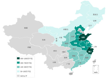 2019年起,多省相繼發(fā)布分散式風(fēng)電規(guī)劃,規(guī)劃總量近25GW,其中規(guī)劃規(guī)模較大的有河北(700萬千瓦)、河南(658萬千瓦)、及山東、江蘇等經(jīng)濟(jì)發(fā)達(dá)、用電負(fù)荷較大并且電網(wǎng)結(jié)構(gòu)較好益于消納的省份。