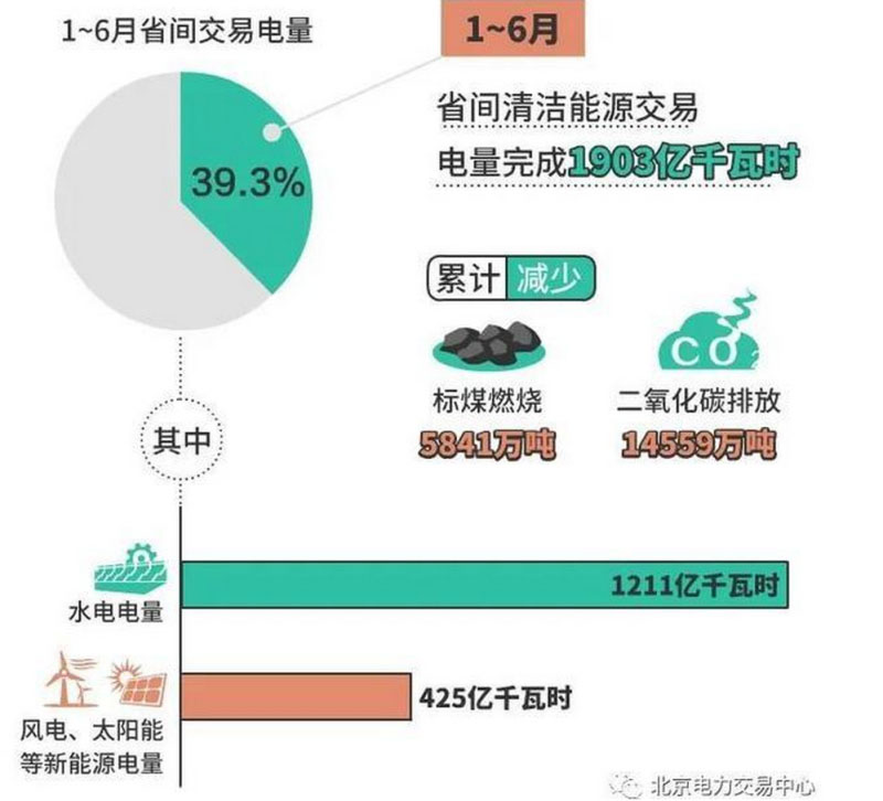 上半年,省間清潔能源交易電量完成1903億千瓦時,占省間交易電量的39.3%。其中,水電電量1211億千瓦時,風電、太陽能等新能源電量425億千瓦時。開展省間清潔能源交易,累計減少標煤燃燒5841萬噸,減少二氧化碳排放14559萬噸。