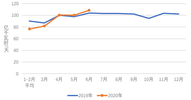 6月份,化工行業(yè)用電量382億千瓦時,同比增長1.8%,增速比上年同期提高1.0個百分點(diǎn);建材行業(yè)用電量370億千瓦時,同比增長8.0%,增速比上年同期提高1.1個百分點(diǎn);黑色金屬冶煉行業(yè)用電量523億千瓦時,同比增長4.0%,增速比上年同期回落8.5個百分點(diǎn);有色金屬冶煉行業(yè)515億千瓦時,同比增長2.6%,增速比上年同期提高1.4個百分點(diǎn)。