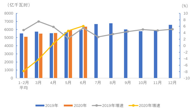 1-6月,全國全社會用電量33547億千瓦時,同比下降1.3%,其中,6月份全國全社會用電量6350億千瓦時,同比增長6.1%。