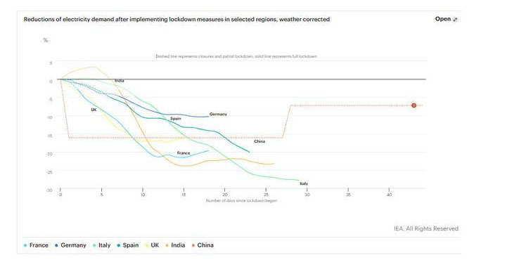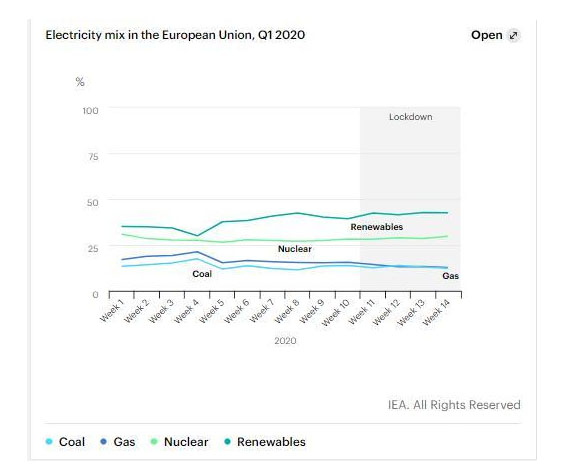 “封國(guó)”“封城”加上企業(yè)停工停產(chǎn),用電需求驟降便在意料之中。今年前3個(gè)月,歐洲電力消費(fèi)量同比減少了10%——據(jù)統(tǒng)計(jì),這是自第二次世界大戰(zhàn)以來最大的降幅,在歐洲各國(guó)電力需求普降的背景下,“通過出口來調(diào)節(jié)過剩電力”的方式變得不那么靈活。