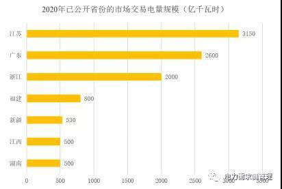 從已公開省份的市場交易計劃規(guī)模來看,江蘇省和廣東省的市場交易規(guī)模領(lǐng)跑全國,且較2019年分別提高了5%(3000億千瓦時)和30%(2000億千瓦時)。