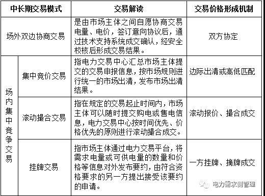中長期交易包括多年、年、季、月、周、多日等日以上周期的交易,主要采用場外雙邊協(xié)商交易和場內(nèi)集中競爭交易兩種模式,其中,集中競爭交易又包括集中競價、滾動撮合和掛牌交易三種交易形式。