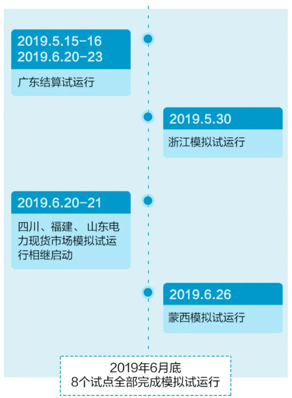 2015年3月啟動(dòng)的新一輪電力體制改革提出,“逐步建立以中長期交易規(guī)避風(fēng)險(xiǎn),以現(xiàn)貨市場發(fā)現(xiàn)價(jià)格,交易品種齊全、功能完善的電力市場”。2017年8月,國家確定南方(以廣東起步)、蒙西、浙江、山西、山東、福建、四川、甘肅8個(gè)地區(qū)作為第一批試點(diǎn),2019年6月,首批8個(gè)電力現(xiàn)貨試點(diǎn)已全部啟動(dòng)模擬試運(yùn)行。2020年3月,廣東進(jìn)行電力現(xiàn)貨市場全月結(jié)算試運(yùn)行系統(tǒng)測試。