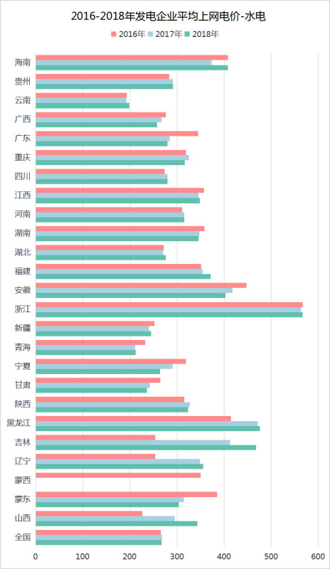 如圖9所示,全國水電平均上網(wǎng)電價在2016-2018年間基本保持穩(wěn)定。