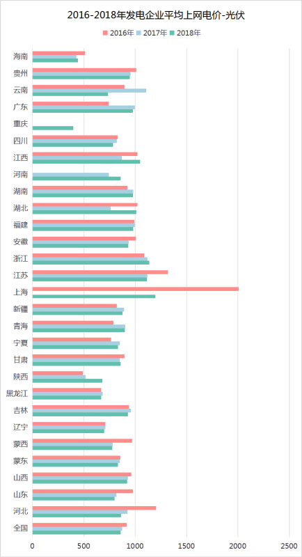 圖7 2016-2018發(fā)電企業(yè)平均上網(wǎng)電價-光伏