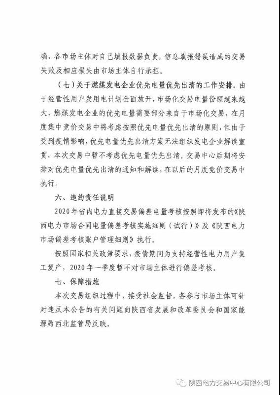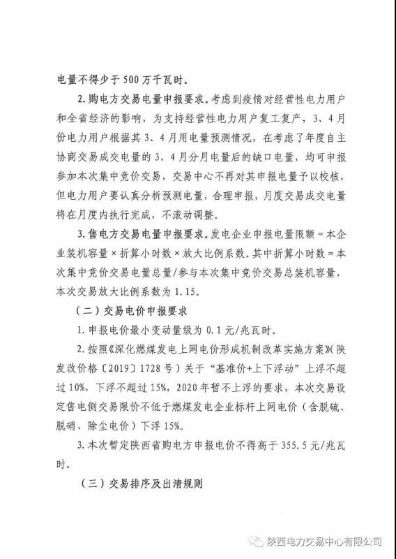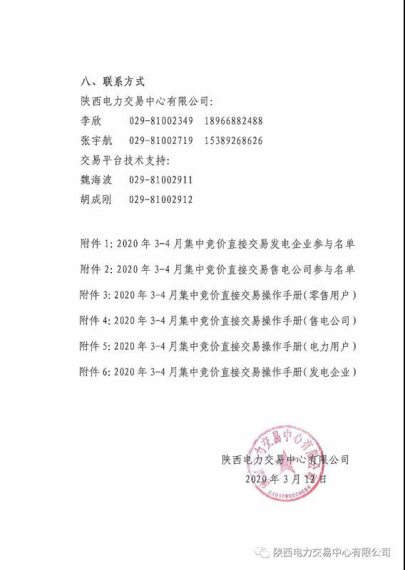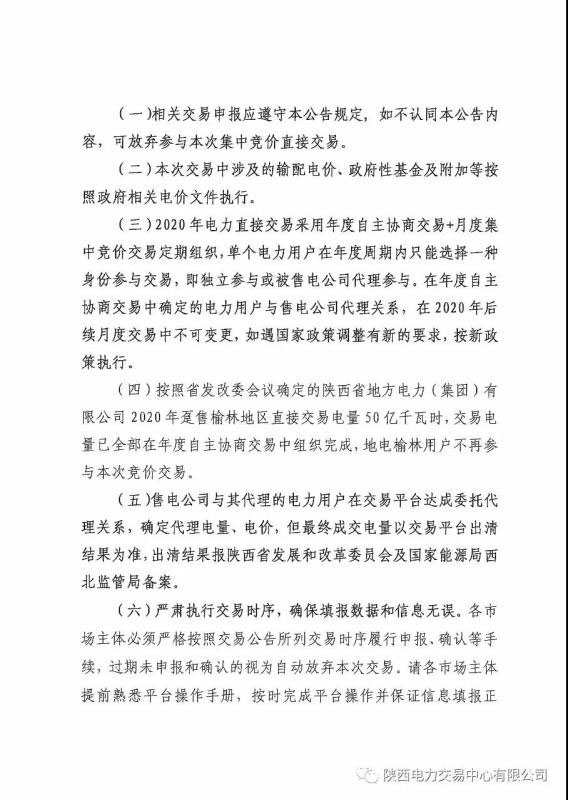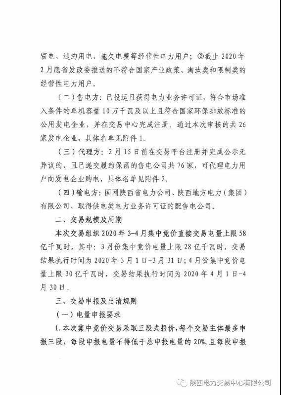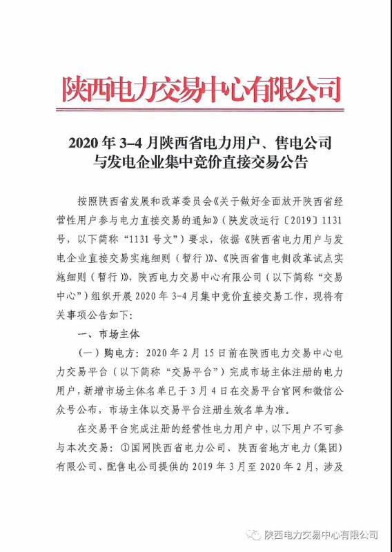 2020年3-4月陜西省電力用戶、售電公司與發(fā)電企業(yè)集中競價直接交易公告