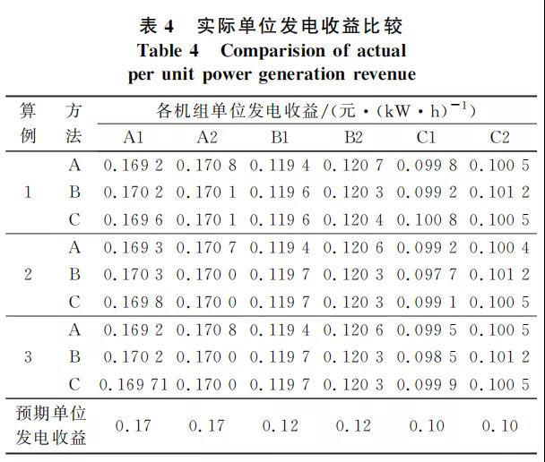 對于實際單位發(fā)電收益 由于欠發(fā)電量無發(fā)電成本,且能獲得部分收益,因此欠發(fā)機組的實際單位發(fā)電收益不會低于系統(tǒng)無偏差電量情況下的機組預期單位發(fā)電收益,如表3所示。