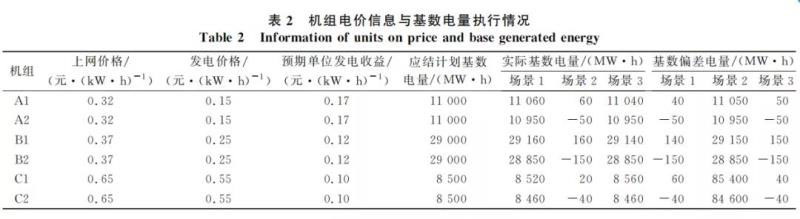 為適應不同的基數(shù)電量收益分配需求,提出了預期收益補償方法、偏差電量替代撮合方法、平均價差補償方法3種基數(shù)偏差電量的結(jié)算處理方法。預期收益補償方法對超發(fā)電量按其發(fā)電成本、欠發(fā)電量按其預期收益進行補償,使得機組實際發(fā)電收益基本不受基數(shù)偏差電量的影響;偏差電量替代撮合方法采用事后發(fā)電權交易的方式,鼓勵低成本超發(fā)電量對欠發(fā)電量進行替代發(fā)電,交易雙方均可獲得收益;平均價差補償方法在電量替代的基礎上,預留部分收益對未成交超發(fā)電量進行補償,兼顧個體主動性與整體均衡性。