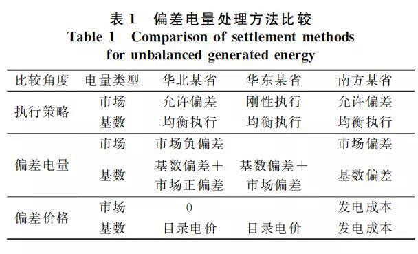 目前國內(nèi)開展電力中長期交易的省份,都會保證市場電量剛性執(zhí)行,而基數(shù)電量具備一定的彈性, 因此一般將基數(shù)電量作為市場電量的緩沖,市場電量按合約結(jié)算,基數(shù)電量保證各電廠機組執(zhí)行進度均衡[14]。但是,市場開放程度的不同及市場電量占比的不同,導致不同省份對于偏差電量的處理方法也不同[2]。中國華北、華東和南方區(qū)域內(nèi)的某省份均已建立了電力中長期市場體制,3個省份市場電量規(guī)模依次擴大,對于市場偏差電量的處理方法各不相同。3個省份對于偏差電量的處理特點如表1所示,具體處理方法見附錄 A。