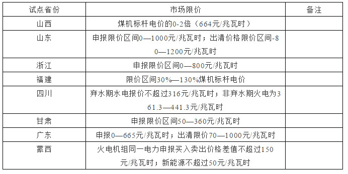 8個(gè)省區(qū)均對(duì)現(xiàn)貨市場申報(bào)價(jià)格或出清價(jià)格進(jìn)行限價(jià)。