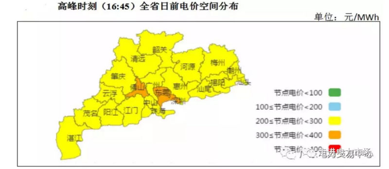 圖3. 2019年10月23日廣東16:45日前電價(jià)空間分布