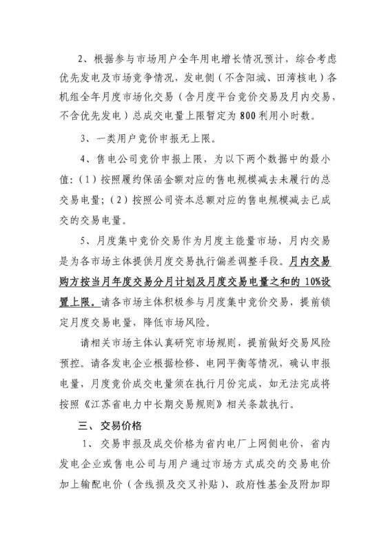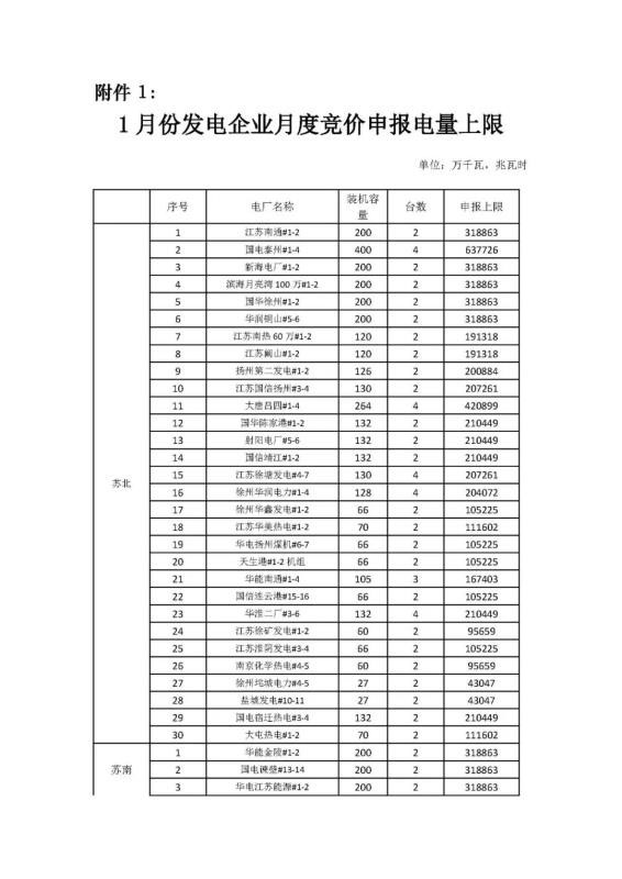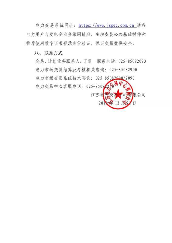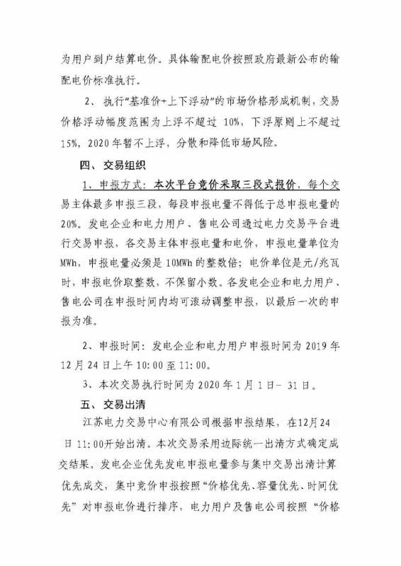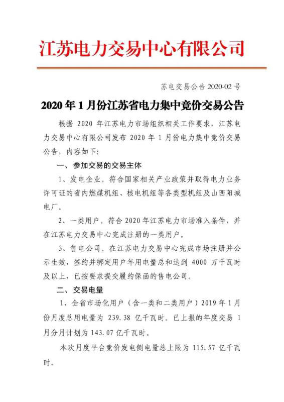 2020年1月份江蘇省電力集中競(jìng)價(jià)交易公告