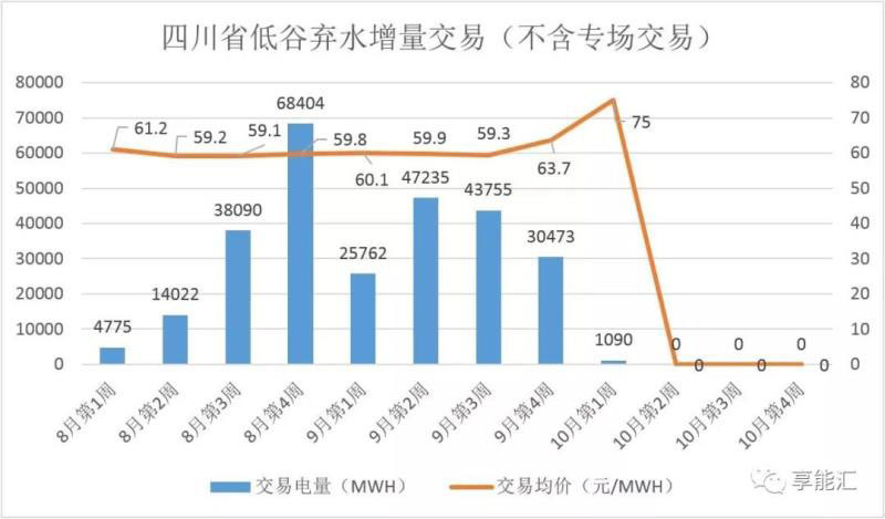 不過這些售電公司在10月份可能笑不出來了。進(jìn)入10月,四川省低谷棄水交易突然進(jìn)入“寒冬”。除第一周有極少量電量成交,且價(jià)格頂上最高限價(jià)0.075元/千瓦時(shí)外,其他三周均無電量成交。