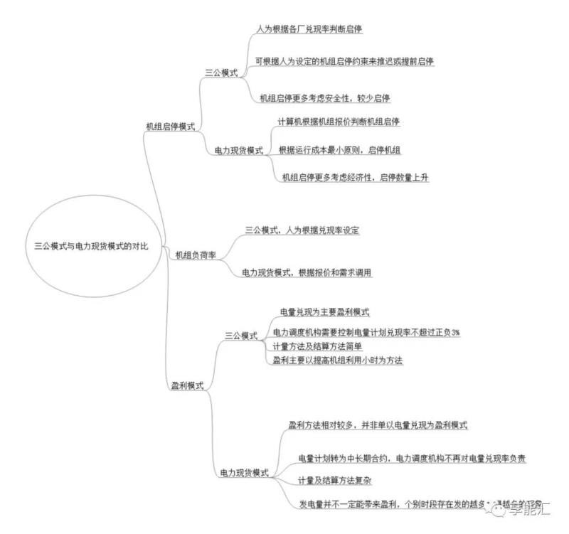 圖:三公調度模式與電力現(xiàn)貨模式的對比