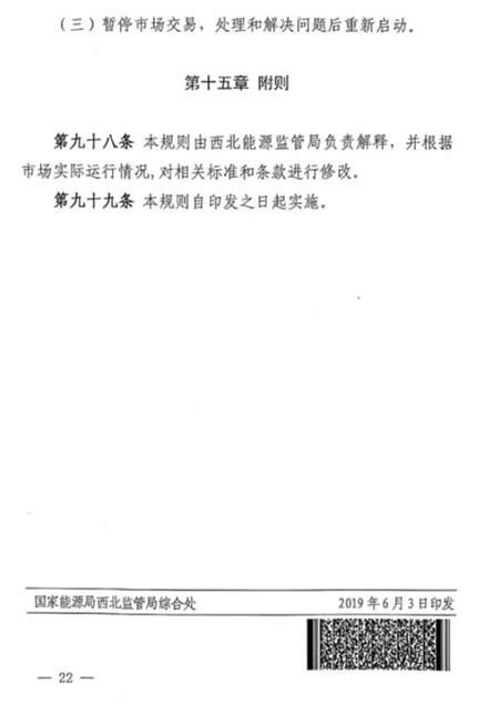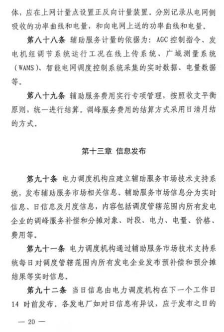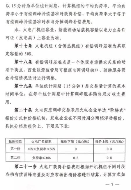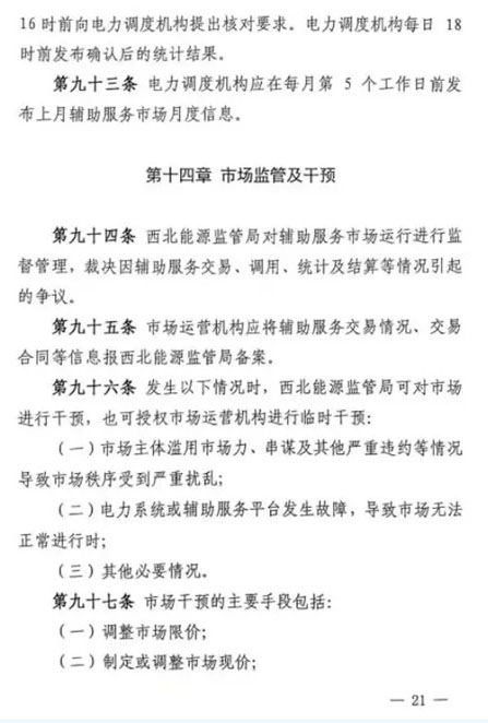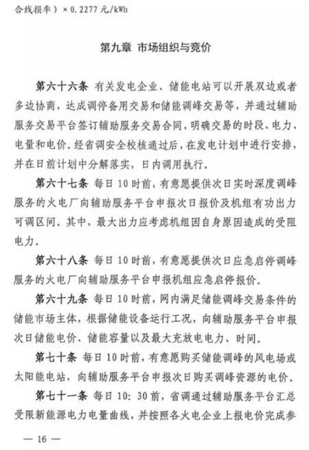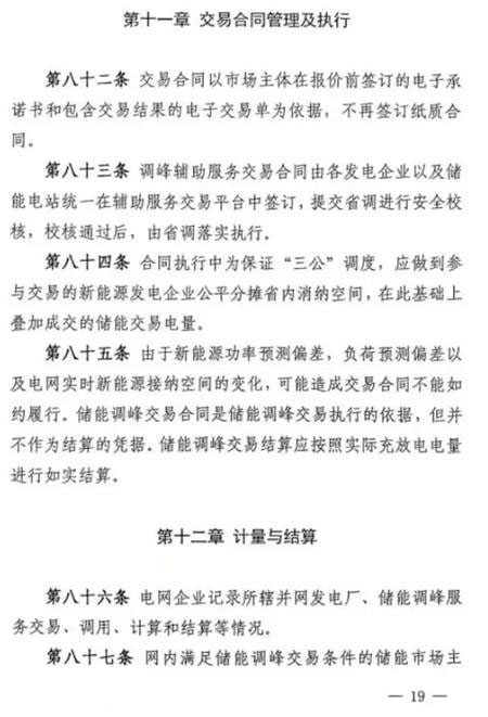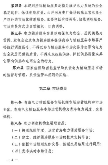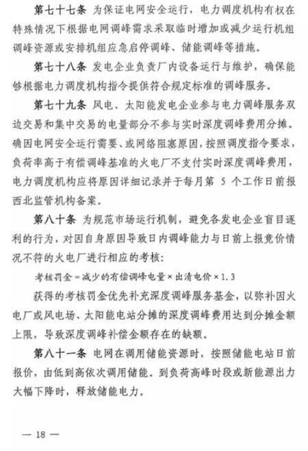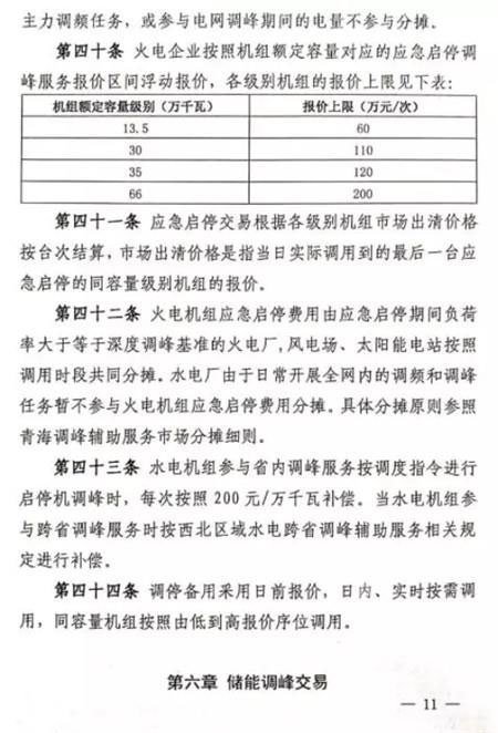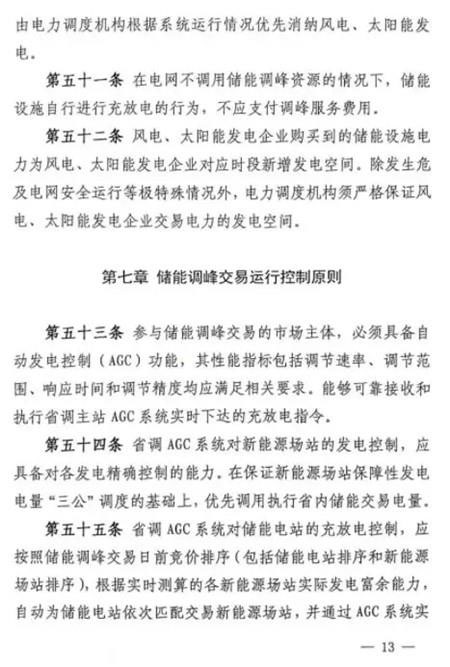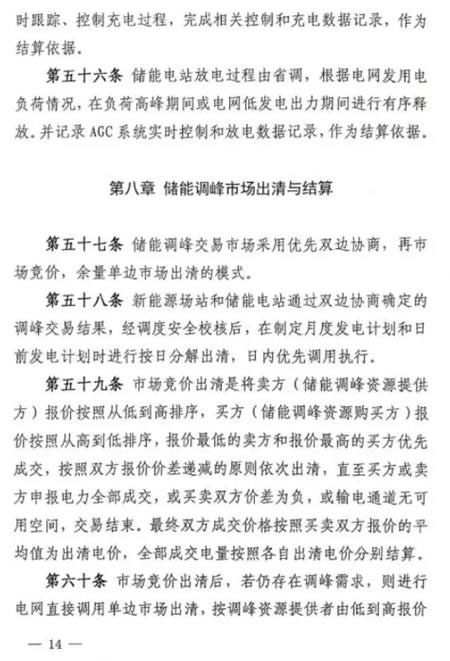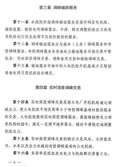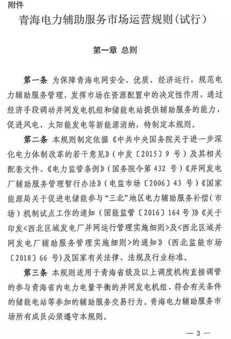 第五十條 如雙邊協(xié)商交易或者競價交易后儲能設施仍有剩余充電能力,在電網需要調峰資源的情況下調度機構可以按照電網調用儲能調峰價格(暫定0.7元/千瓦時)調用儲能設施參與青海電網調峰。此時段儲能調峰服務費用參照青海調峰輔助服務市場分攤細則進行分攤。對于該部分儲能電力空間,由電力調度機構根據系統(tǒng)運行情況優(yōu)先消納風電、太陽能發(fā)電。第五十一條 在電網不調用儲能調峰資源的情況下,儲能設施自行進行充放電的行為,不應支付調峰服務費用。第五十二條 風電、太陽能發(fā)電企業(yè)購買到的儲能設施電力為風電、太陽能發(fā)電企業(yè)對應時段新增發(fā)電空間。除發(fā)生危及電網安全運行等極特殊情況外,電力調度機構須嚴格保證風電、太陽能發(fā)電企業(yè)交易電力的發(fā)電空間。詳細文件如下:
