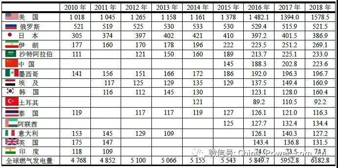 燃?xì)獍l(fā)電發(fā)展較快,主要是美國(guó)。由于美國(guó)頁(yè)巖氣開發(fā)成功,助長(zhǎng)了燃?xì)獍l(fā)電的增長(zhǎng)。2017年美國(guó)天然氣產(chǎn)量有57%來(lái)自頁(yè)巖氣(參見(jiàn)《2019年世界天然氣全記錄》)。2018年美國(guó)燃?xì)獍l(fā)電占全球燃?xì)獍l(fā)電總量的1578.5/6182.8=25.5%,占全球發(fā)電總量的1578.5/26614.8=5.9%。