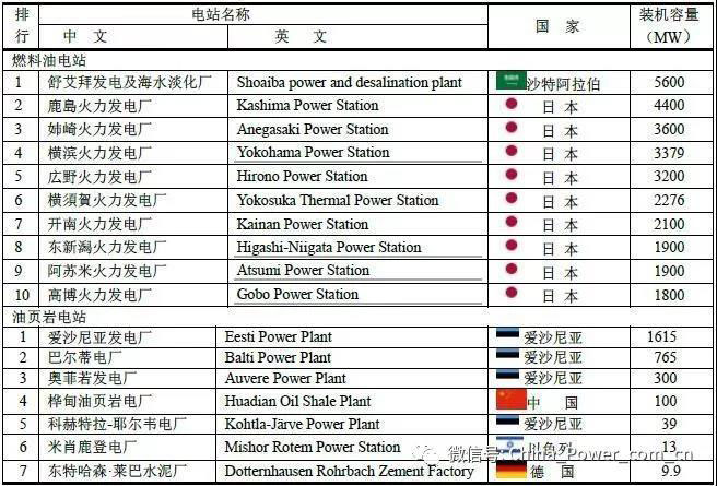 表中油頁(yè)巖電站所使用的燃料不是頁(yè)巖油,而是油頁(yè)巖。