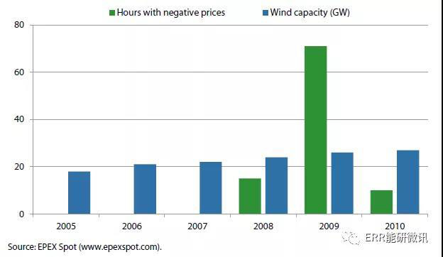 圖1.3 德國電力市場的風(fēng)電裝機(jī)和負(fù)價格