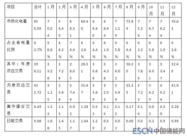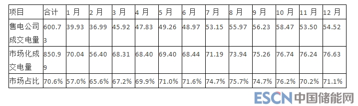 除部分電量較小、對(duì)電價(jià)不敏感的小微用戶(hù)自主選擇暫不參與交易外,其他大工業(yè)用戶(hù)均參與了電力市場(chǎng)化交易,全年共成交電量850.99億千瓦時(shí),同比增長(zhǎng)21.03%,占全省大工業(yè)用電量的94.67%,占全部用電量的62.74%。