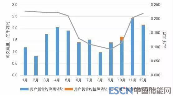 圖 2-20:2018 年事后合約轉(zhuǎn)讓交易成交電量、電價(jià)統(tǒng)計(jì)(用戶(hù)側(cè))