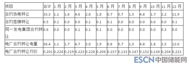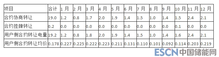 表 2-202018 年事后合約轉(zhuǎn)讓交易成交電量、電價(jià)統(tǒng)計(jì)(用戶(hù)側(cè))