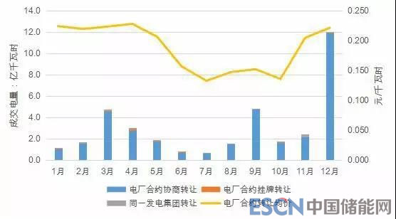 圖 2-19:2018 年事后合約轉(zhuǎn)讓交易成交電量、電價(jià)統(tǒng)計(jì)(電廠(chǎng)側(cè))